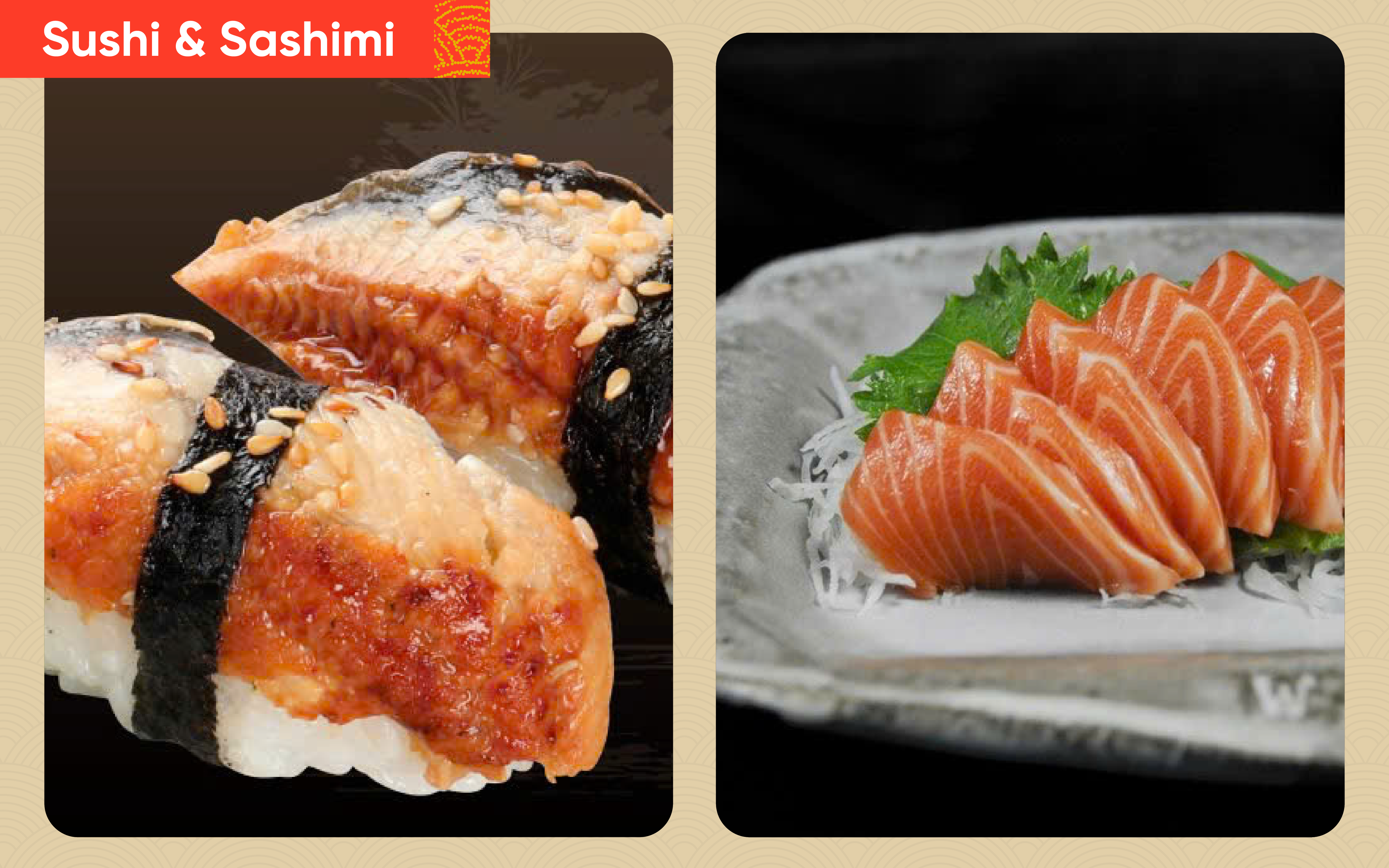 Menu đa dạng gồm 7 hương vị mì khác nhau, từ đậm đà béo ngậy, ngọt thanh, cho tới cay nồng. Menu hấp, dẫn với những set cơm, sushi, sashimi, cơm cuộn, salad, đa dạng và đầy đủ dinh dưỡng phù hợp với mọi khẩu vị khách hàng.