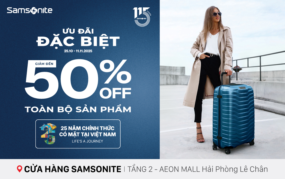 Cửa hàng Samsonite: T225-1, Tầng 2 TTTM AEON MALL Hải Phòng Lê Chân