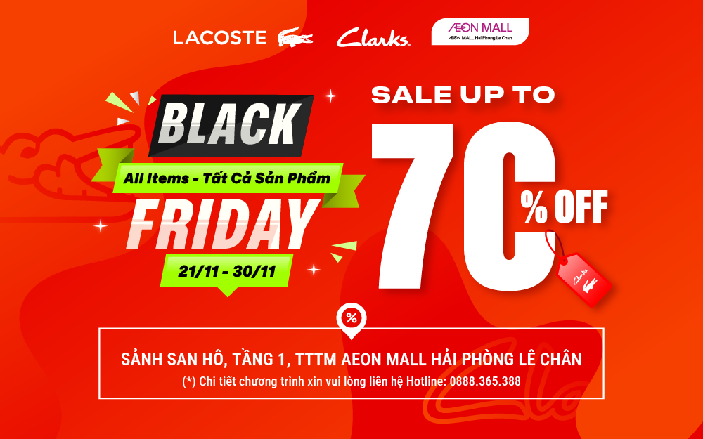 [AEON MALL Hải Phòng Lê Chân x Lacoste & Clarks] BLACK FRIDAY – SĂN DEAL KHỦNG ĐẾN 70%