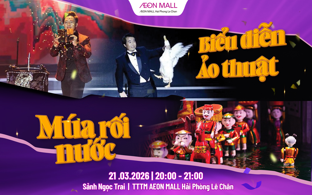 Cuối tuần này, AEON MALL Hải Phòng Lê Chân mời bạn và gia đình cùng khám phá đêm biểu diễn đặc sắc kết hợp giữa Ảo thuật hiện đại và Múa rối nước truyền thống Việt Nam – một trải nghiệm giải trí trọn vẹn cho mọi lứa tuổi 🎉