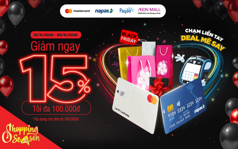 Bạn yêu chẳng cần rút ví hay lục tìm tiền mặt, chỉ cần chạm nhẹ một cái là xong. Vì giờ đây, NAPAS, Mastercard và Payoo cùng bắt tay mang đến loạt ưu đãi hấp dẫn tại AEON MALL Hải Phòng Lê Chân. Cùng săn deal BLACK FRIDAY cực chất khi thanh toán không tiếp xúc: