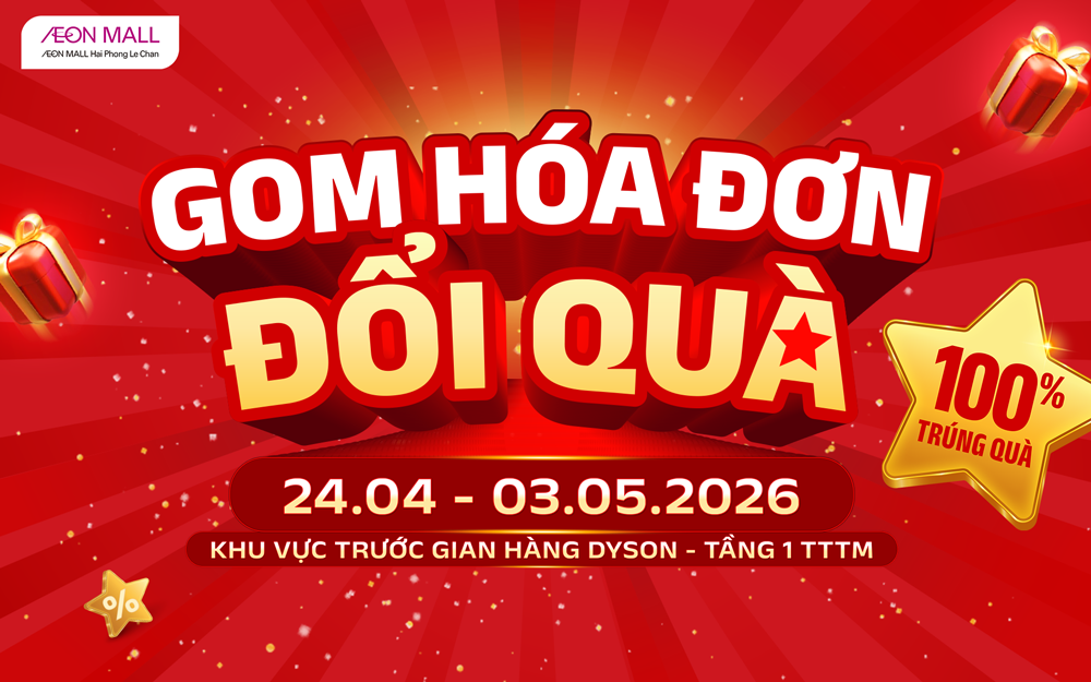 😘Cơn sóng sale lớn nhất tháng 4 đang đến gần, bên cạnh hàng loạt những siêu phẩm với giá cực ưu đãi, AEON MALL Hải Phòng Lê Chân còn mang đến cho khách hàng chương trình “Gom hóa đơn đổi quà” cực kỳ hấp dẫn.