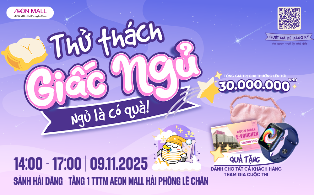 Cuộc thi “THỬ THÁCH GIẤC NGỦ” lần đầu tiên được tổ chức tại AEON MALL Hải Phòng Lê Chân, nơi giấc ngủ trở thành một “thử thách” thú vị nhất Mùa Đông 2025!