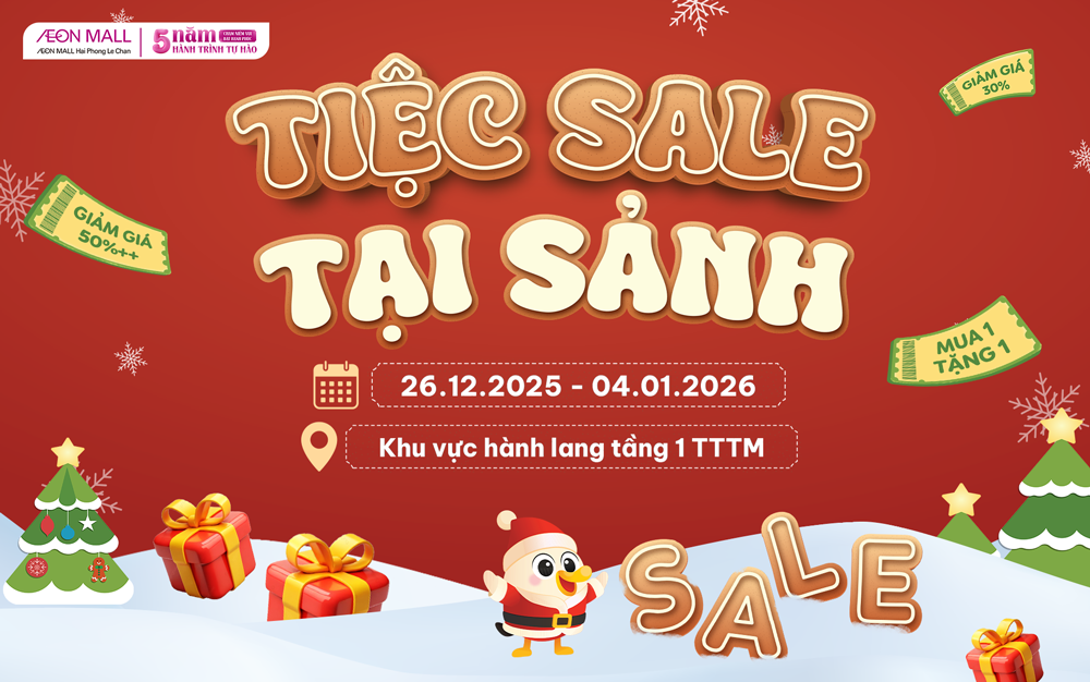 AEON MALL Hải Phòng Lê Chân khao bạn tiệc sale tại sảnh dọn nhà đón năm mới 2026 với hàng ngàn ưu đãi giảm giá cực lớn: