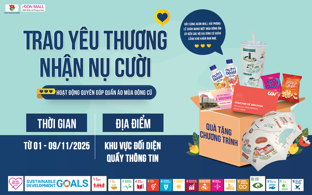 ✨ Tham gia ngay sự kiện để nhận về những phẩn quà tặng hấp dẫn cũng như lan toả tinh thần tích cực đến với mọi người xung quanh cùng AEON MALL Hải Phòng Lê Chân bạn nhé!